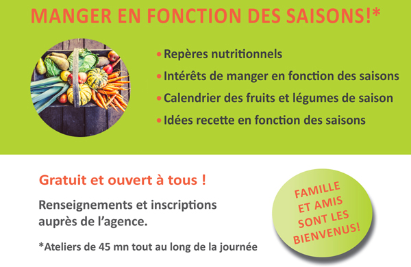 Gratuit et ouvert à tous, participez à l'animation "Mangez en fonction des saisons" et apprenez à associer les fruits et légumes de saison !